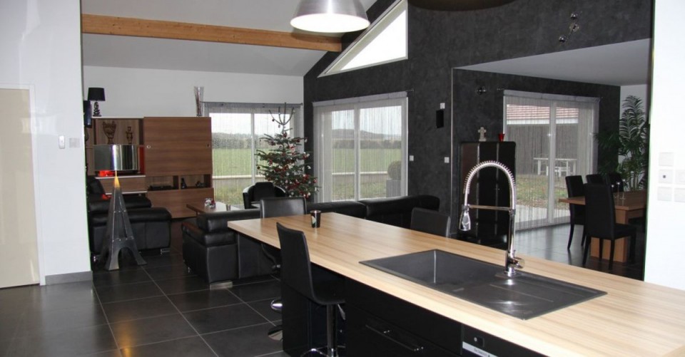 Le résultat a permis de disposer d’un beau coin séjour salon cuisine totalement ouvert, favorisant ainsi la convivialité !